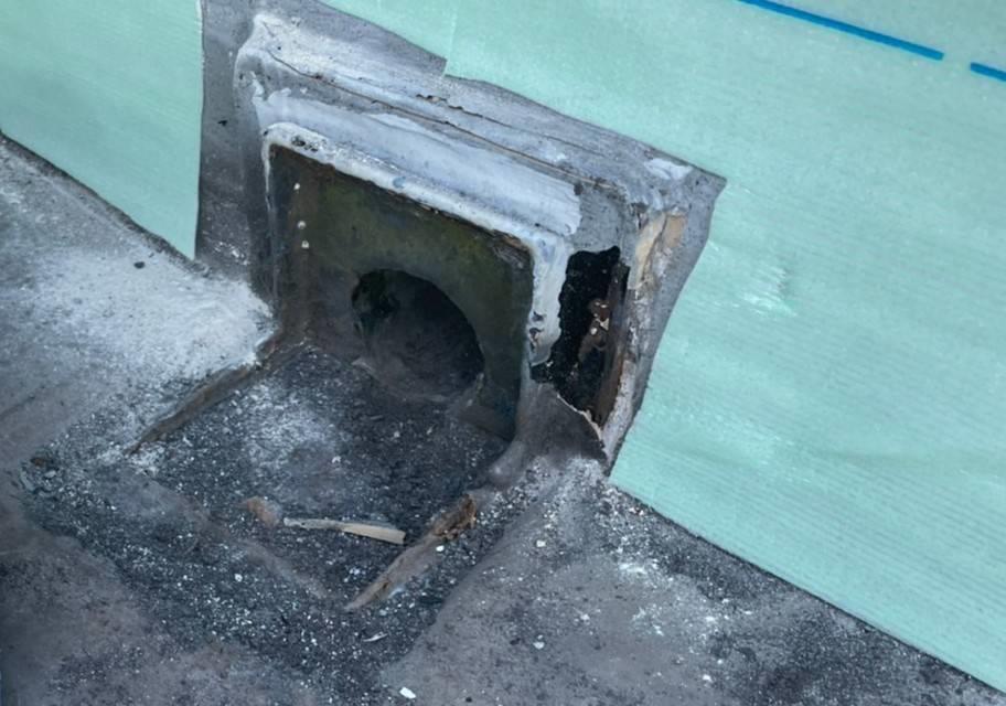 ドレンは防水層と雨どいのジョイントの役目もあり、そのドレンが劣化するとその双方の接合部が剥離し、防水性能が低下してしまい、雨漏りの原因となるからです。
